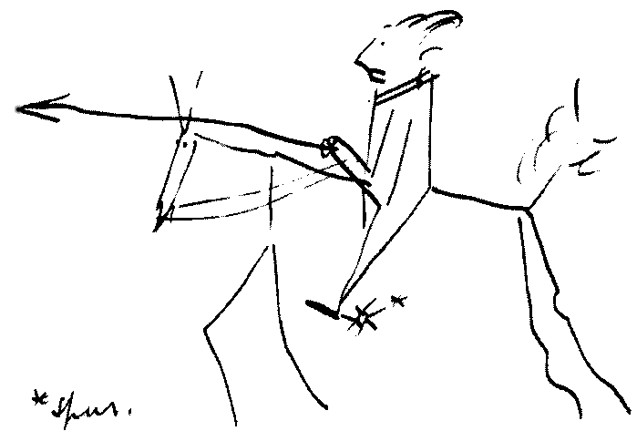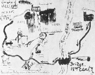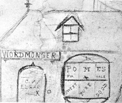 he hurriedly drew in pen and ink a rough sketch of the stage showing the position of the
